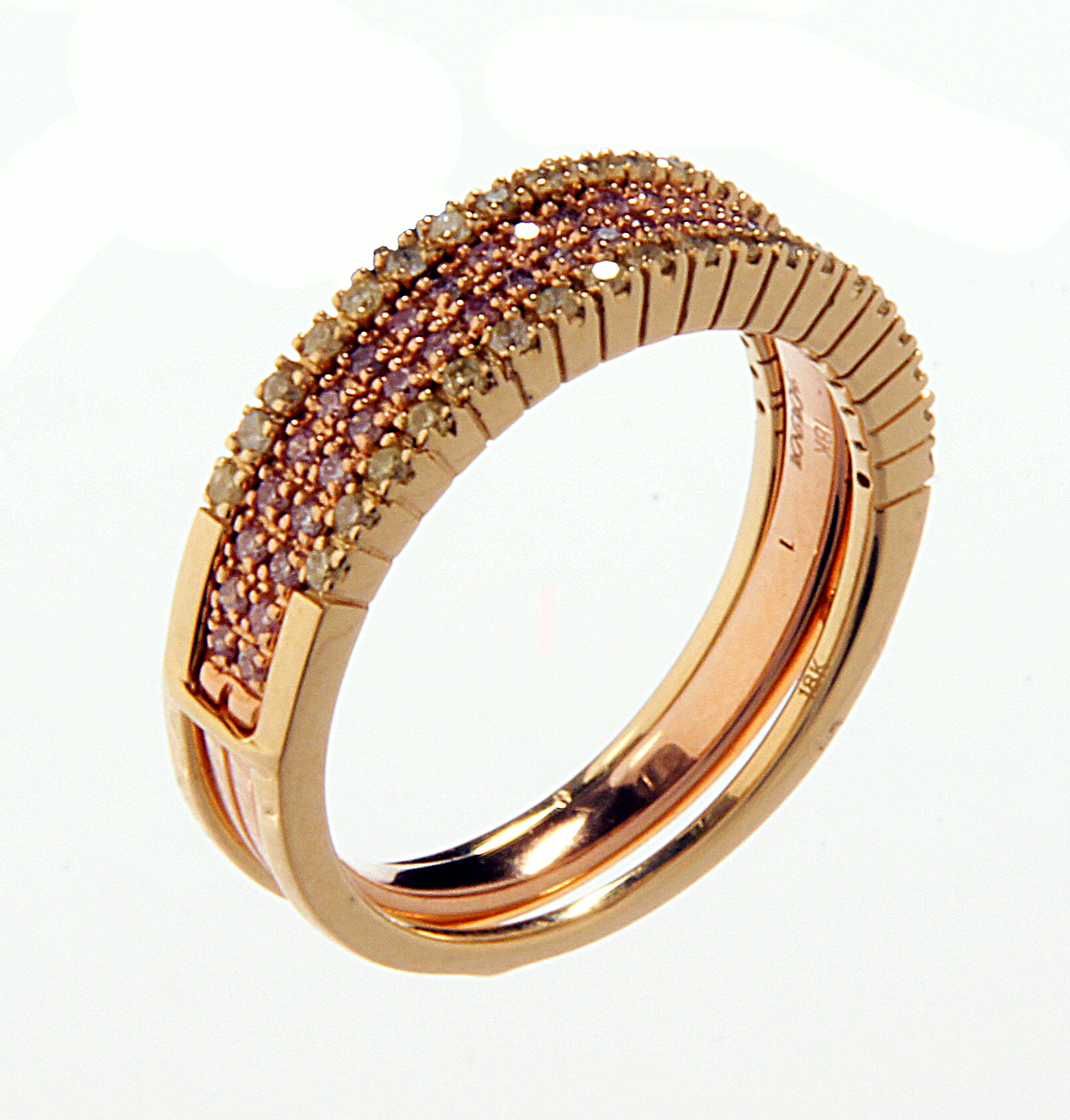 Two Tone 18K Gold Pink and Yellow with Pink (0.16ct) and Yellow (0.22) Diamonds – Stock# 6876