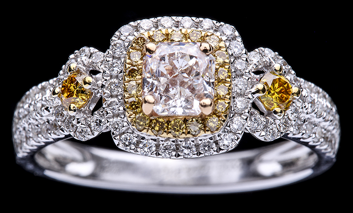 Unique Three Color Diamond Engagement Ring – 1.0 ctw in 18K White Gold – Stock# 8516