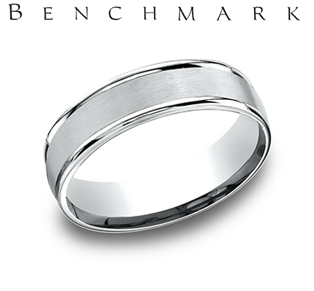 Wedding Band 6.5mm Satin Center With High Polish Edges RE Light Comfort Fit Band in 14K White Gold – Stock# 9338