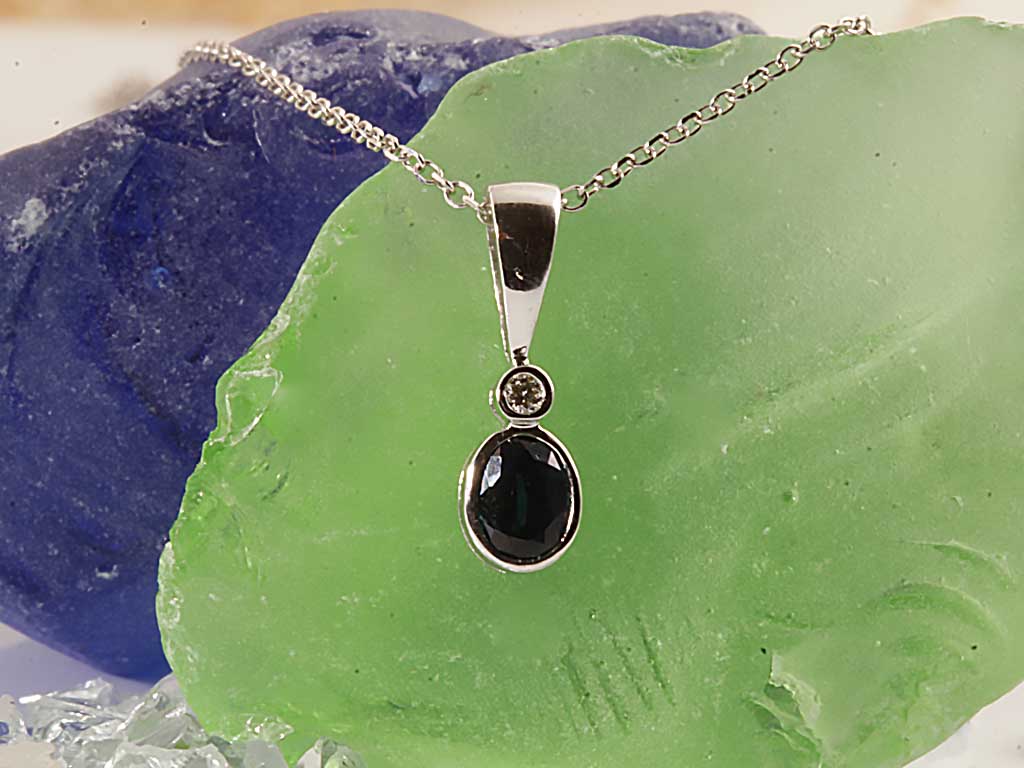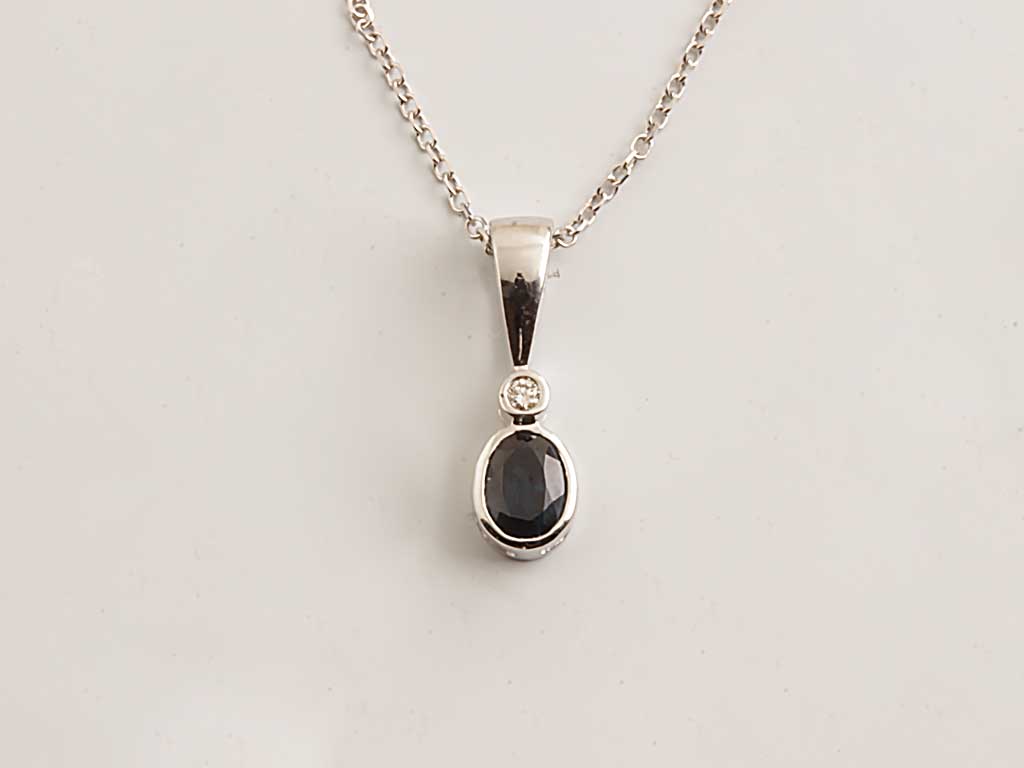 WG Oval Saph/Dia Pend 18 Inch Chain #11543