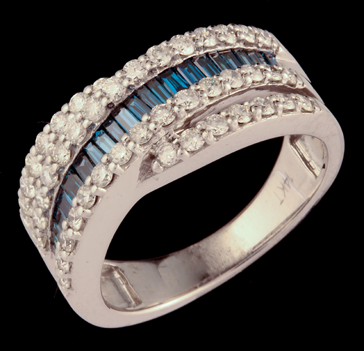 White (0.75ctw) and Blue (0.51ctw) Diamond Band in 14K White Gold – Stock# 9485