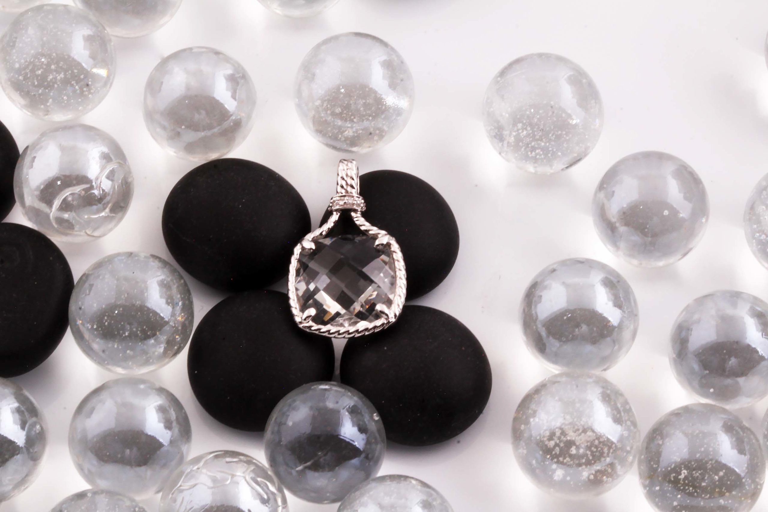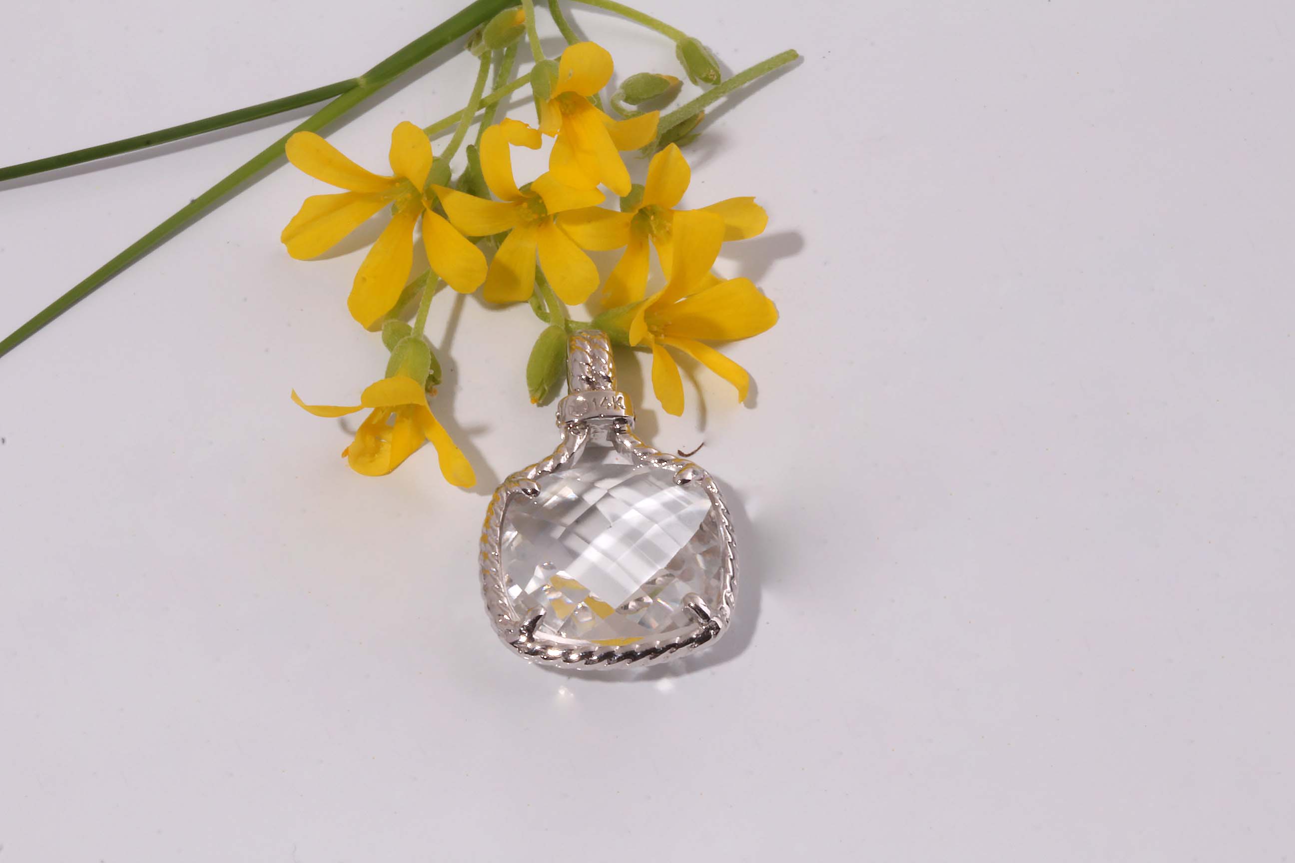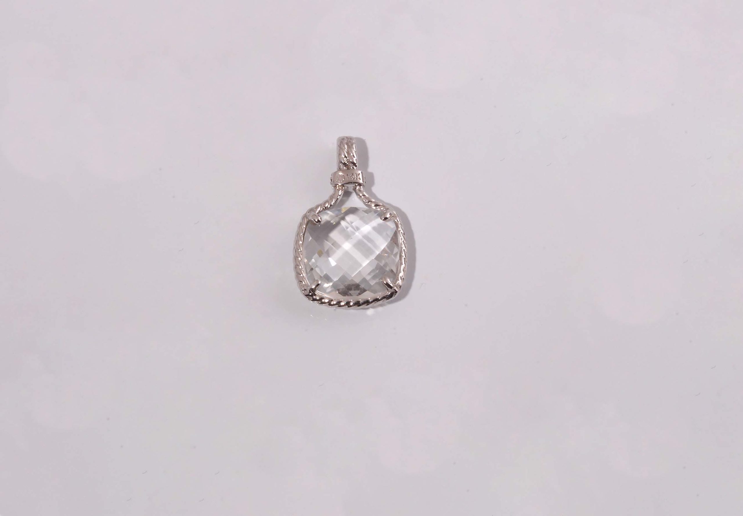 White Topaz Double Sided Faceted 12 x 12MM 14K WG Rope Pendant # 230-00014