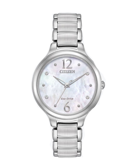Women’s Eco-Drive Silver Mother of Pearl Face and Stainless Steel Bracelet – Stock# 9556