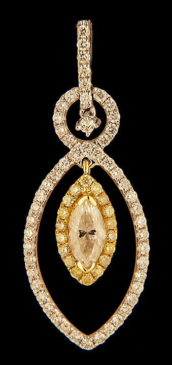 Yellow (0.22ctw) and White (1.26ctw) Diamond Pendant in 18K Two Tone Gold – Stock# 8564