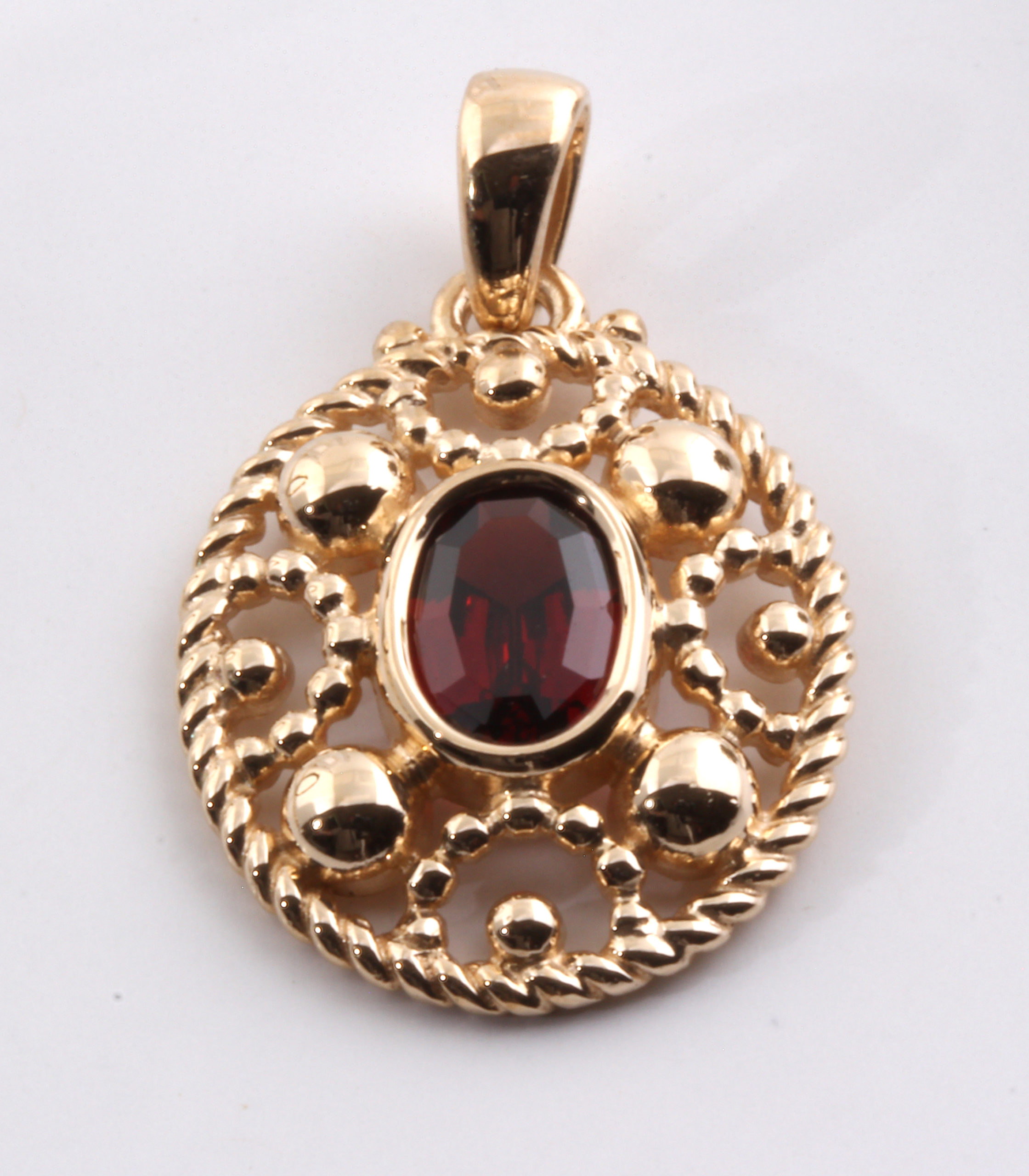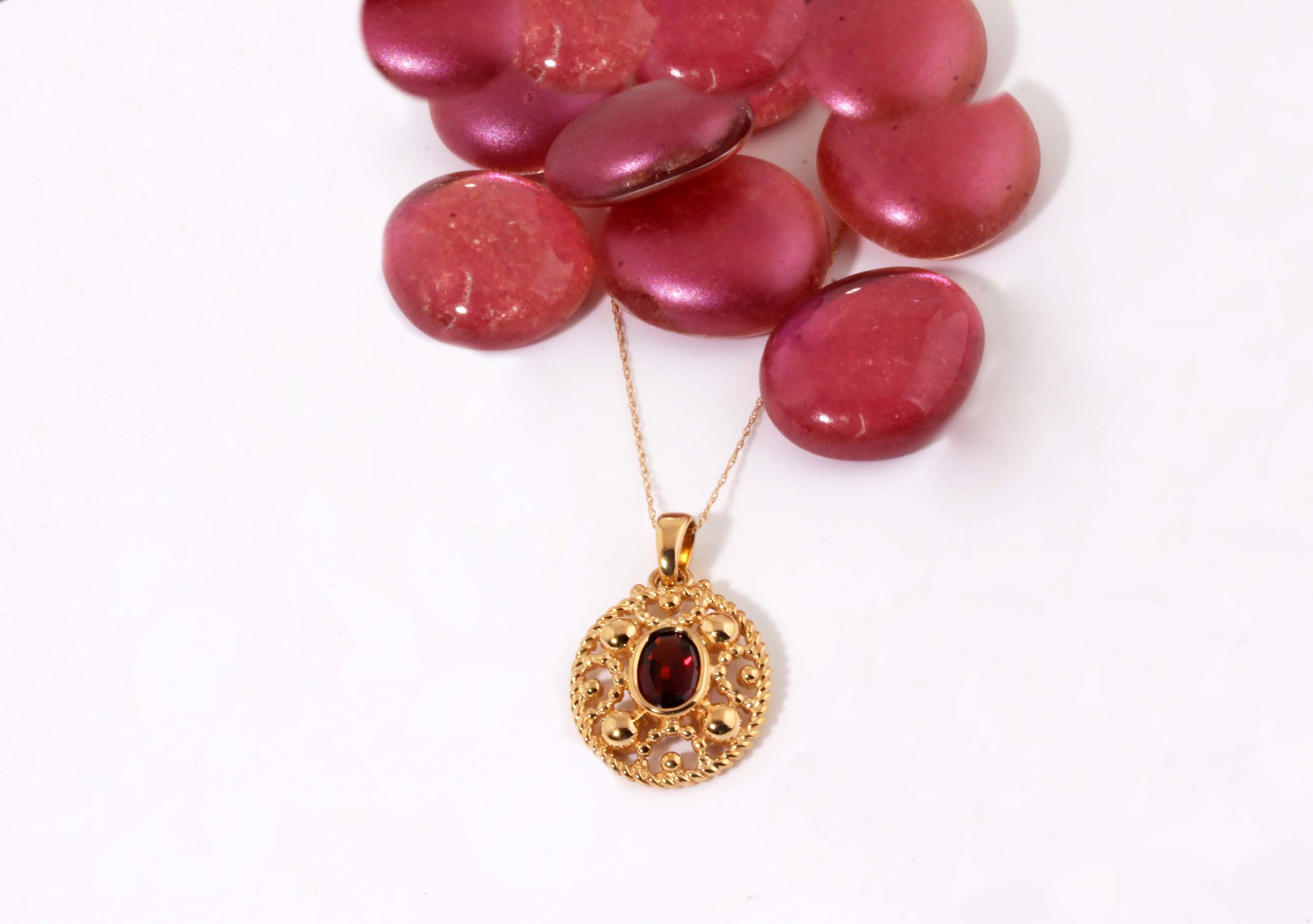 Yellow Gold 25 x 18 MM Lace Pendant With Center 8 x 6 MM Genuine Garnet 3.89 Gram 9913